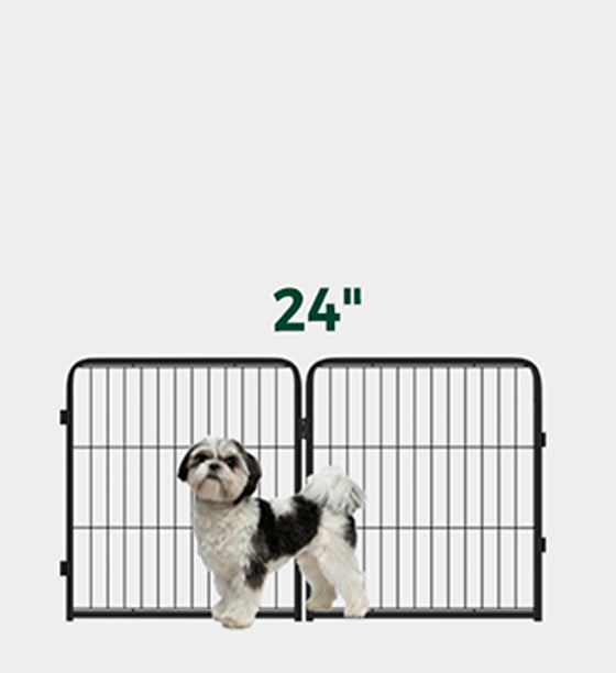 Constructed from durable full-metal materials, this fence offers a robust and enduring enclosure for your furry friend. We recommend thoroughly inserting the metal stakes and ensuring that the tops are level with the panels for optimal sturdiness.
